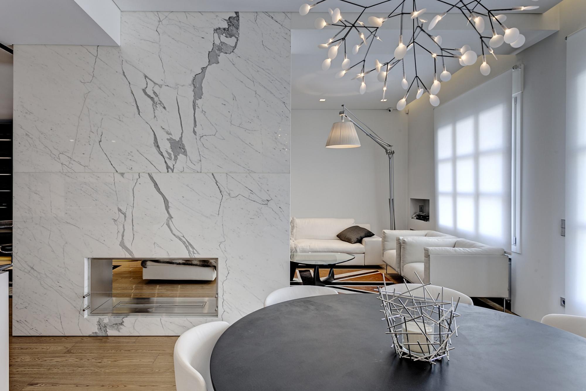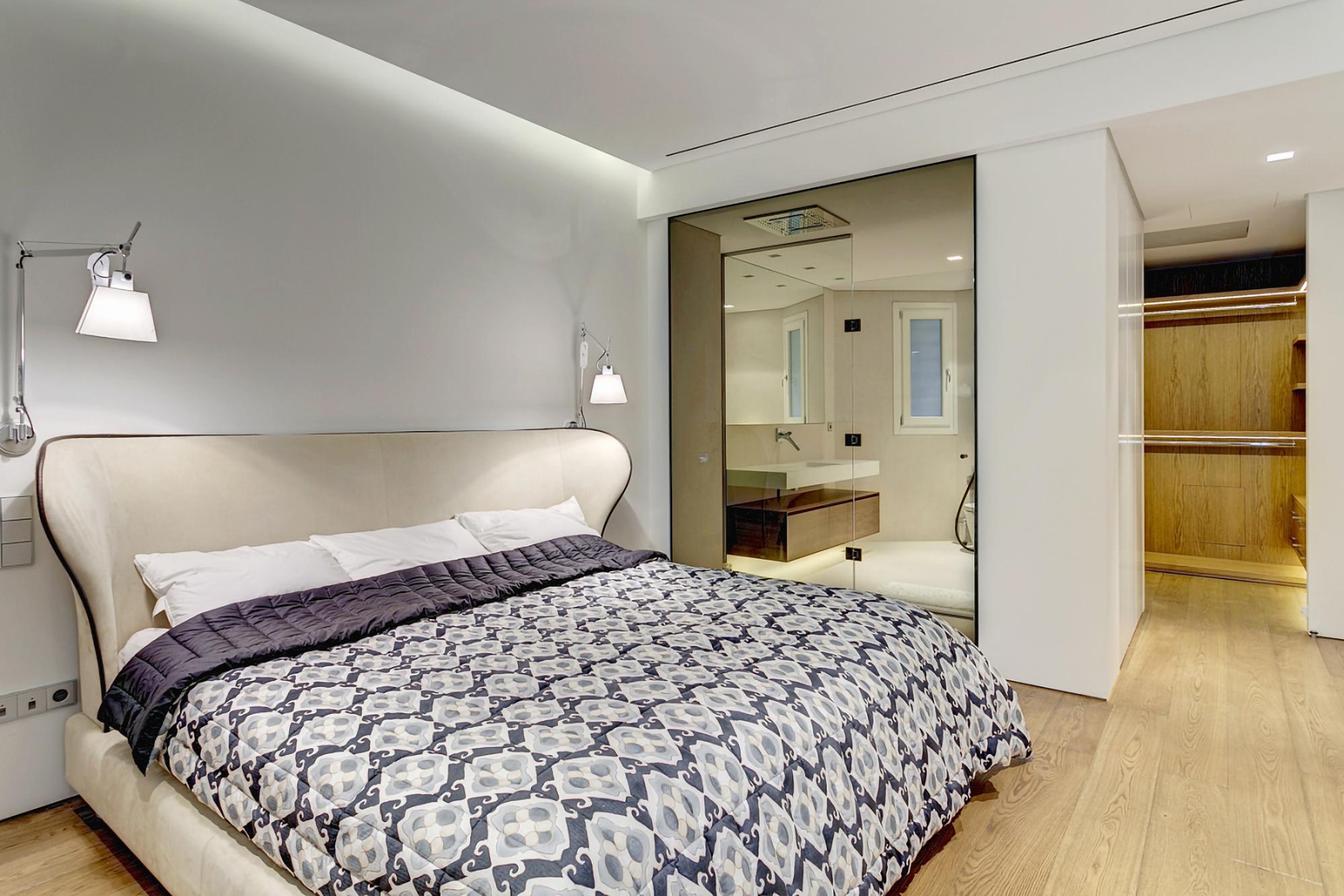 Tο διαμέρισμα αυτό βρίσκεται στον τέταρτο όροφο κτιρίου που χρονολογείται στη μεσοπολεμική περίοδο, κοντά στην κεντρική πλατεία του Κολωνακίου. Το μέγεθος και το σχήμα του είναι ενδεικτικά της περιόδου εκείνης. Παρά την εγγενή φωτεινότητα του διαμερίσματος, ο επιμήκης διάδρομος ήταν αρκετά σκοτεινός. Για να αλλάξει αυτό, προσθέσαμε δύο κομψές φωτεινές λωρίδες στον διάδρομο που οδηγεί από τους κοινόχρηστους χώρους στις κρεβατοκάμαρες.